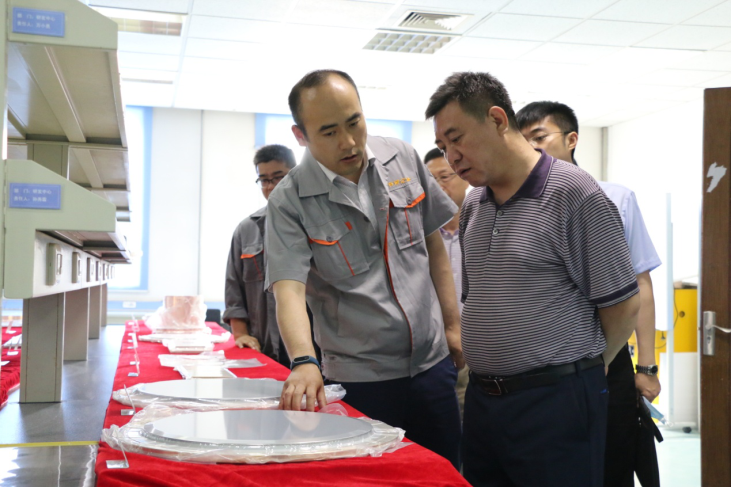 2017年5月19日,工业和信息化部原材料司有色处靖大伟处长一行莅临有研亿金开展调研工作,有研亿金董事长王兴权、总经理庞欣等高管接待。