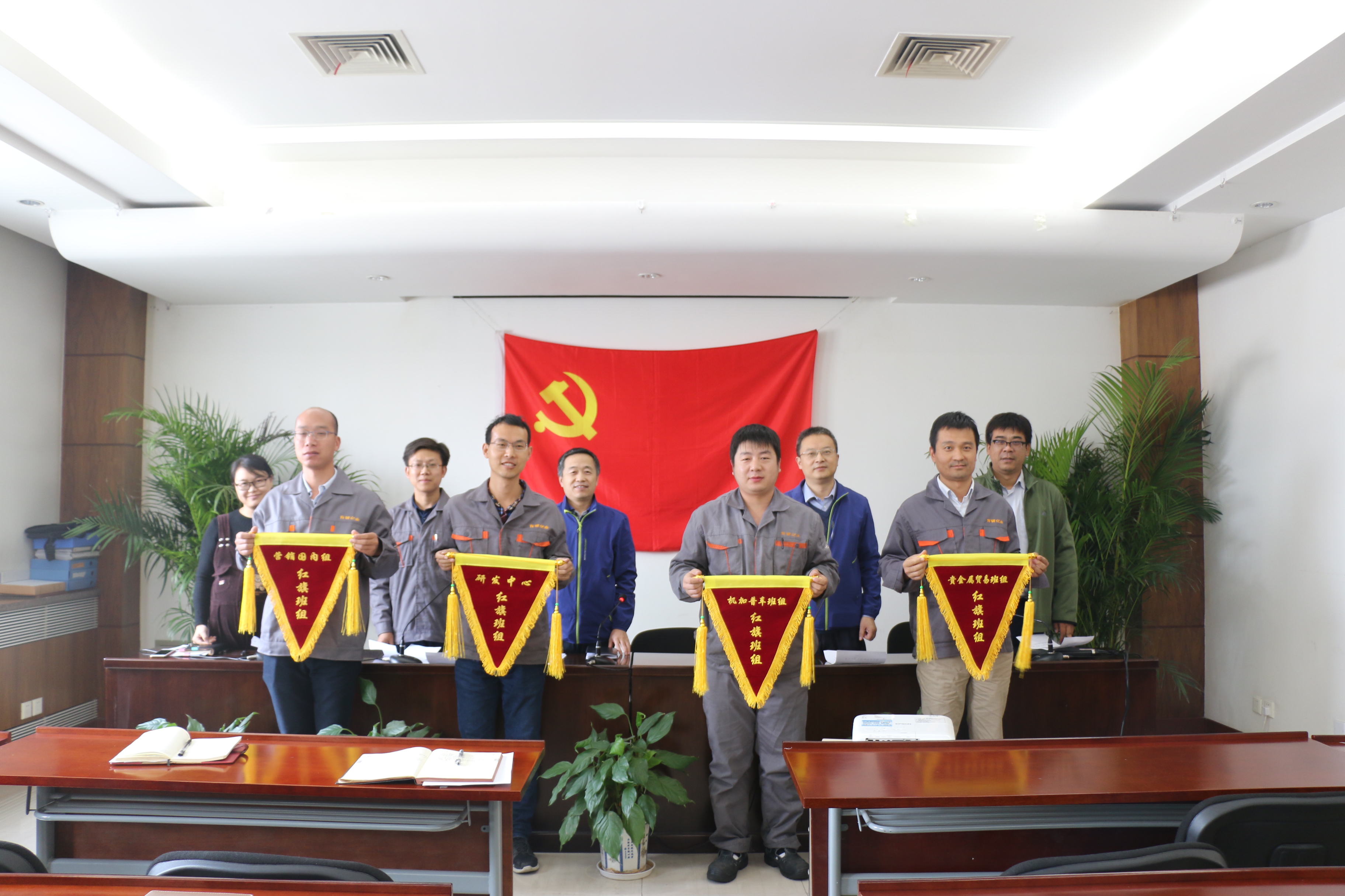 为认真贯彻落实党中央及集团相关会议精神,切实落实集团战略及有研亿金十三五规划,也为了提高广大职工的工作积极性、主动性和创造性,充分发挥团队协作精神和先进典型的引领示范作用,从而不断提升企业核心竞争力。有研亿金党支部近日开展了 “红旗班组”的评选活动。经班组申报、部门推荐、演讲展示、领导考评四个环节的比拼,最终研发管理部-研发中心、靶材制造部-机加普车班组、营销部-国内营销组、翠铂林-贵金属班组4个班组脱颖而出,荣获“红旗班组”荣誉称号。同时对入围复赛班组生产管理部-采购班组进行表彰。