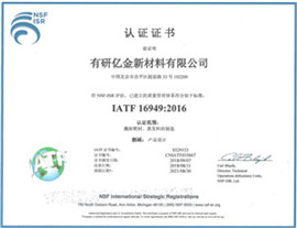 有研亿金致力于持续改善服务及品质,我们已通过ISO 9001ISO14001 ISO/TS 16949认证。同时通过多家欧美客户的VDA6.3体系的审核。在质量管理上,公司团队致力于